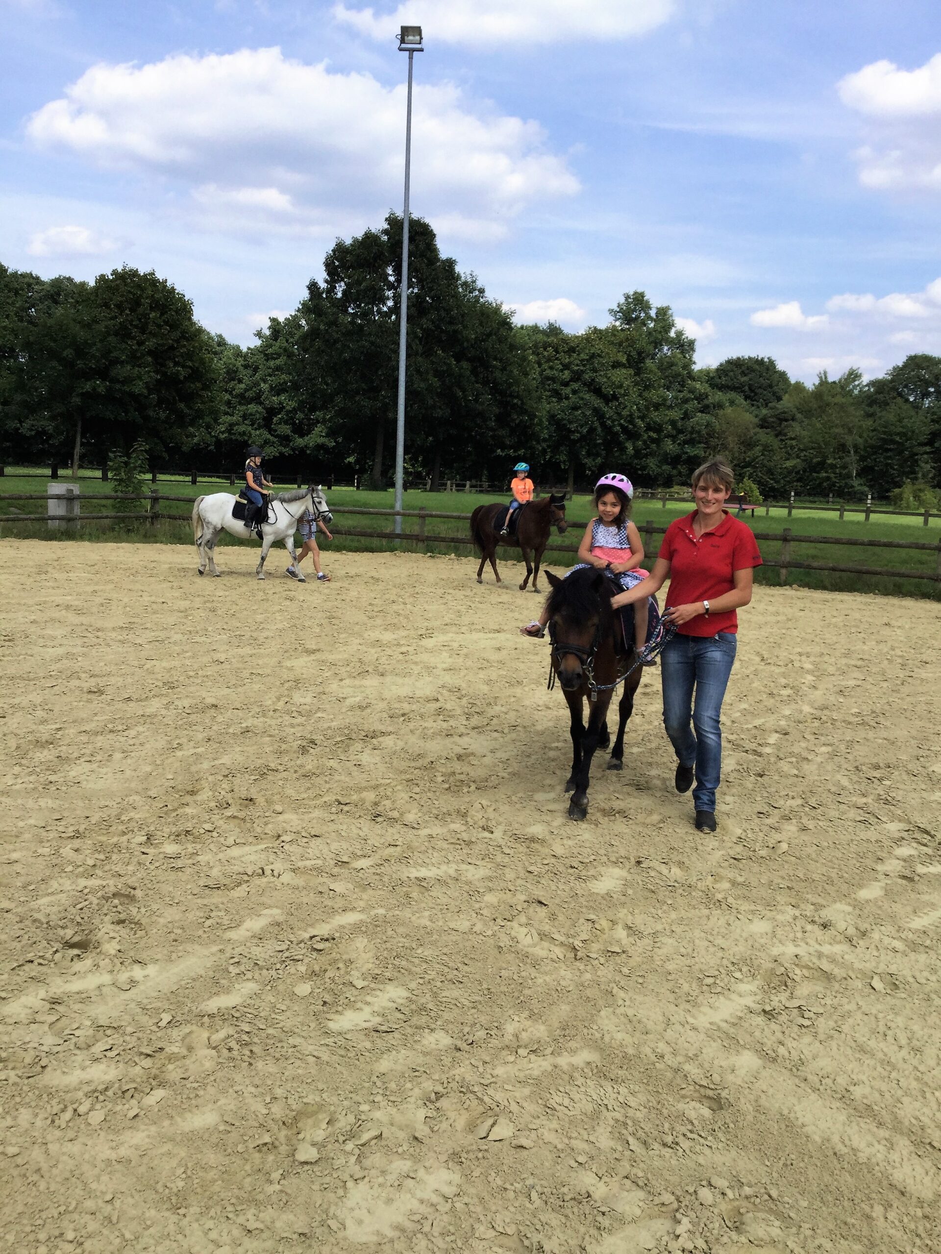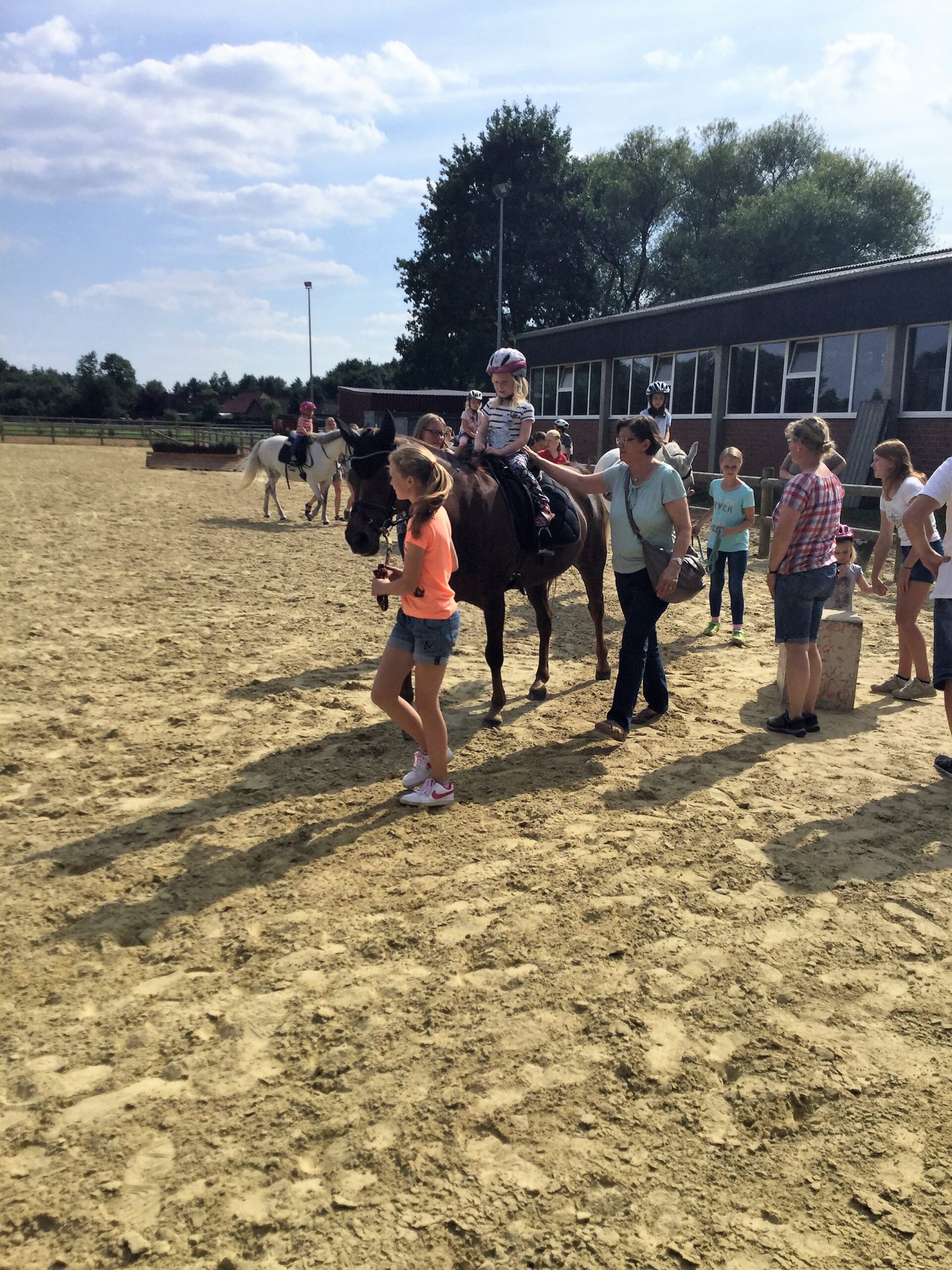 So kamen am Montag, den 07. August 2017, viele Kinder mit ihren Eltern auf unsere Vereinsanlage auf dem Hof Ottmann. Nach einer kurzen Begrüßung und ein paar Informationen zu unserem Reitschulangebot ging es dann auch schon los. Für viele Kinder konnte es gar nicht schnell genug losgehen, manche waren doch noch etwas zurückhaltender bei dem Anblick der Ponies, aber am Ende kam doch jeder auf seine Kosten.
