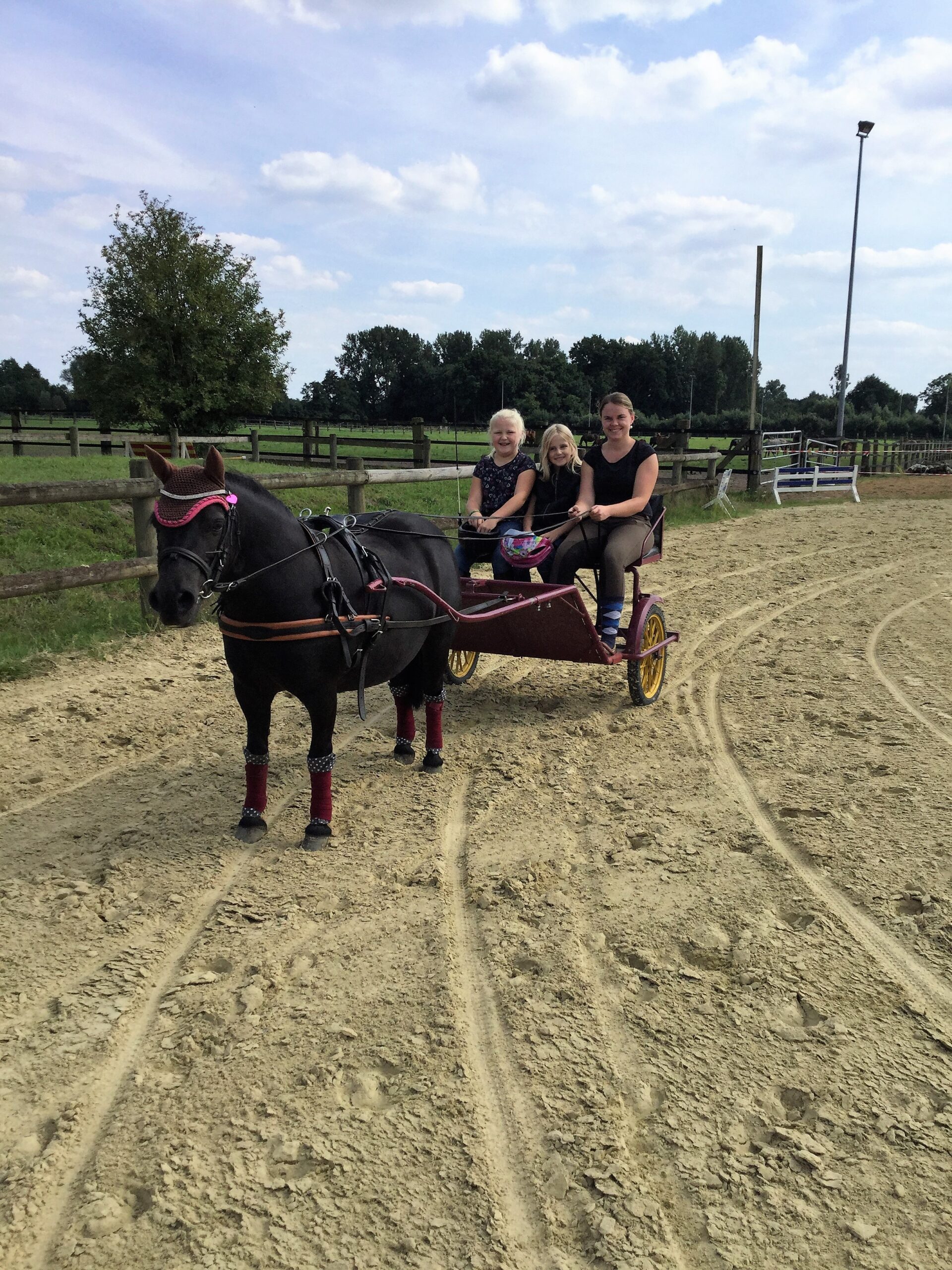 Neben dem Ponyreiten drehte auch das kleine Pony „Emma“ mit ihrer Besitzerin Anna Meier ihre Runden auf dem Außengelände. Nacheinander durften die Kinder mit Anna zusammen ein paar Runden im Sulky fahren. Viele Kinder freuten sich als Anna fragte: „Sollen wir auch einmal etwas schneller fahren?“