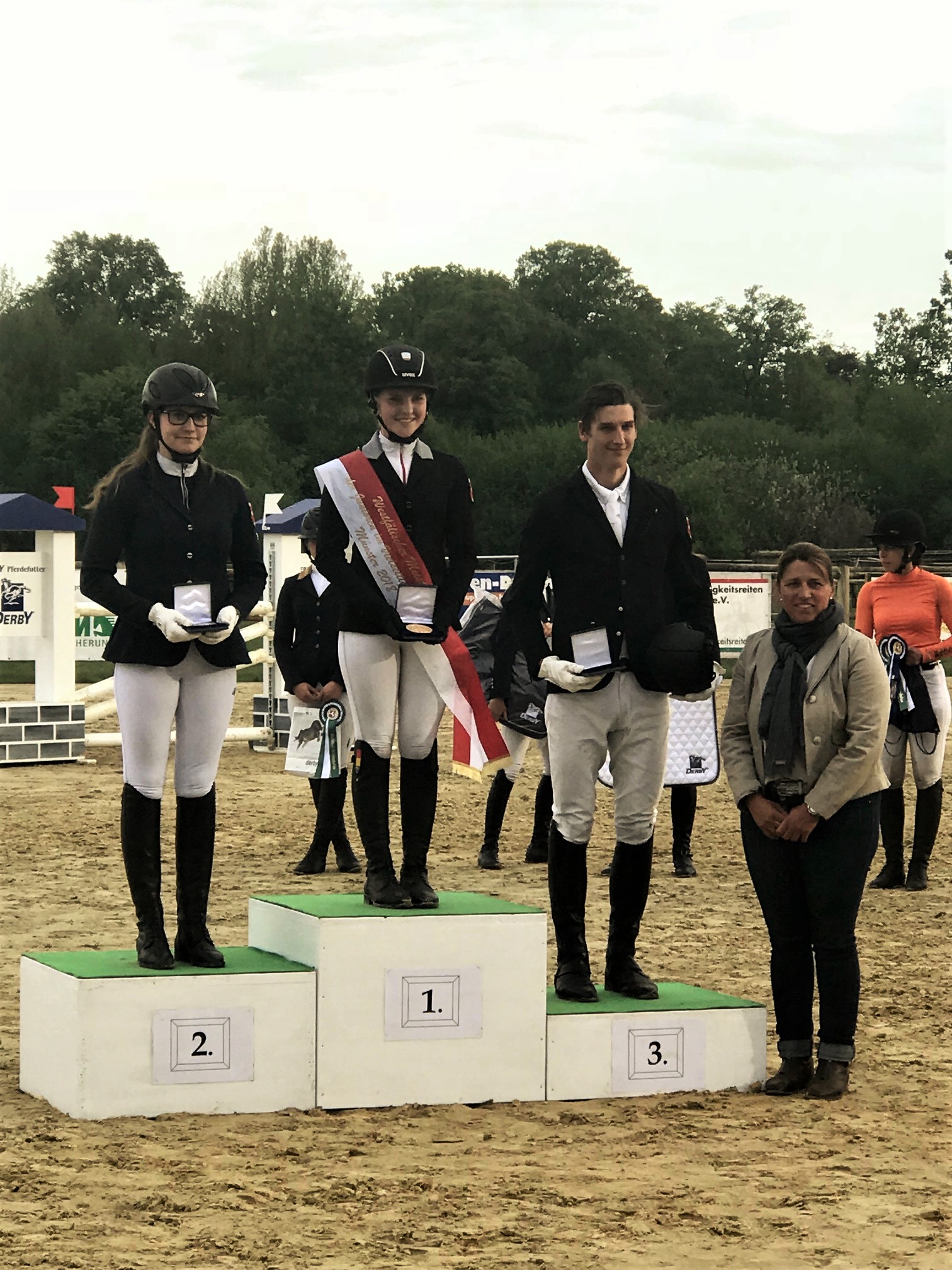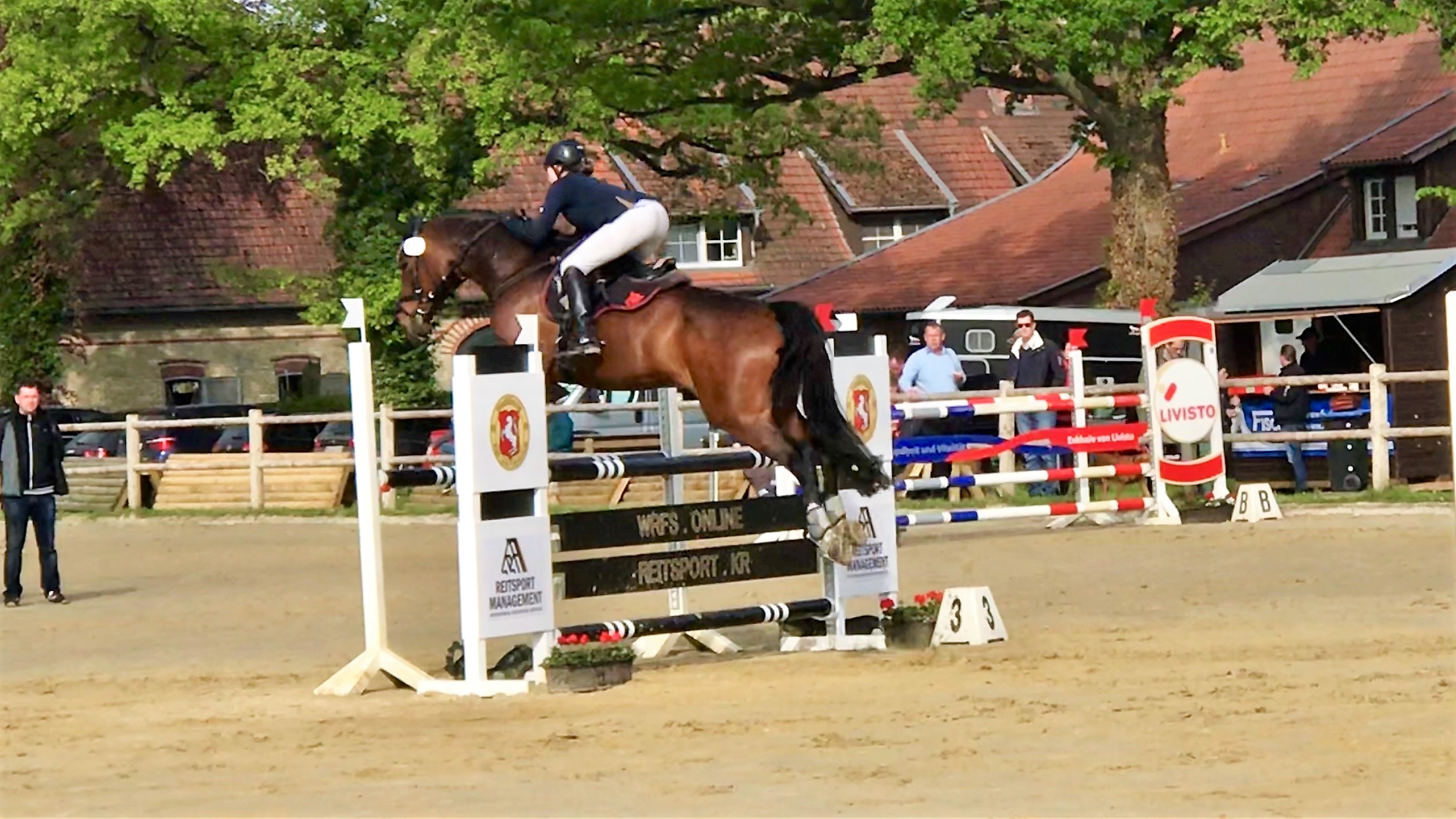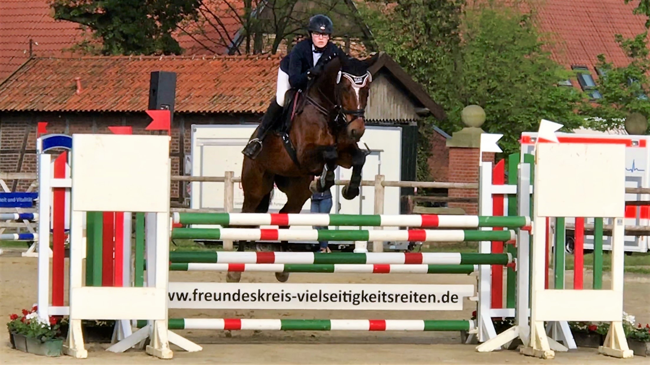 Von Anfang an hatte sie mit einem 1. Platz in der Dressur schon eine optimale Startposition. Auch im Gelände blieb sie fehlerfrei und musste lediglich 8 Strafpunkte aus dem Springen mit in die Wertung nehmen.