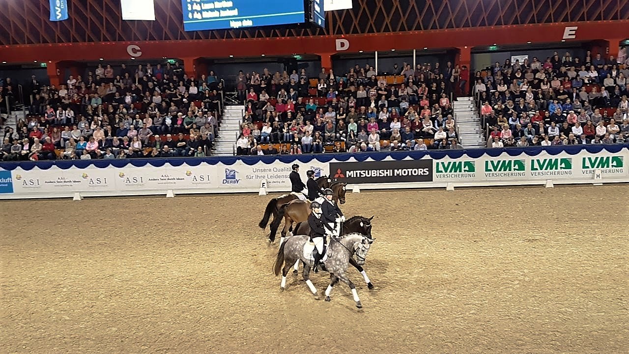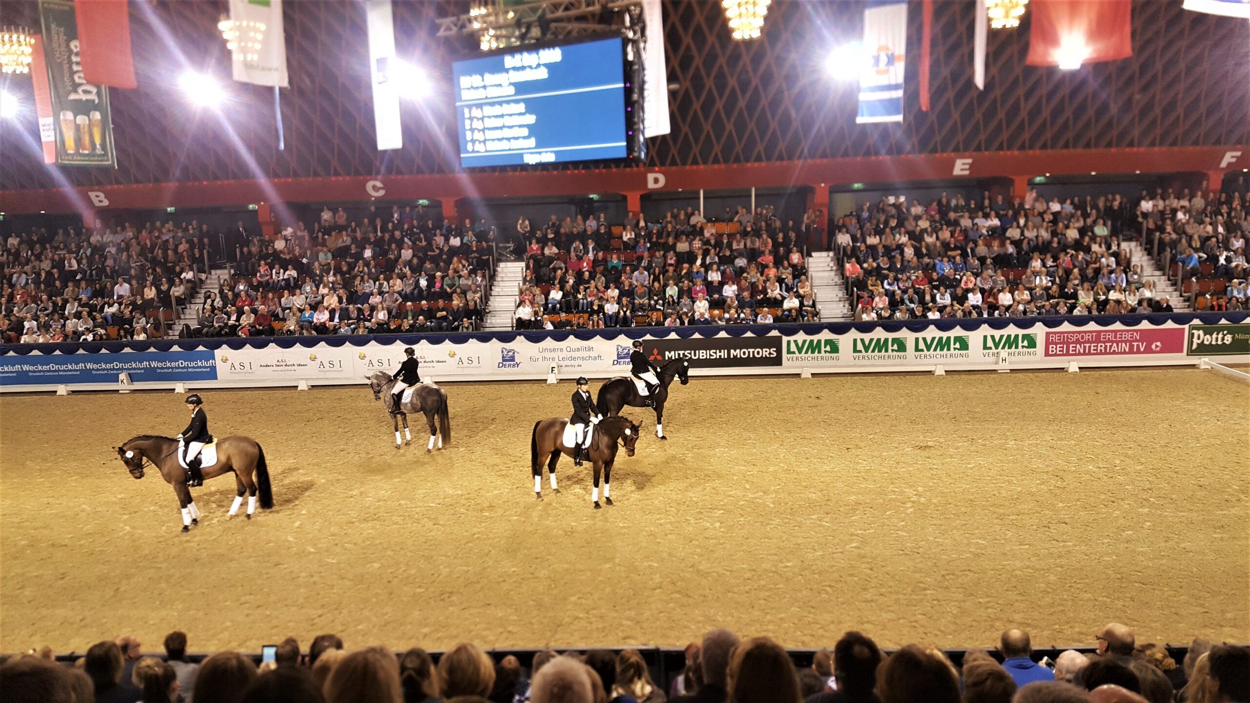 Zunächst startete unser Team mit einem ersten Platz in der Dressur in den Wettkampf um die Wanderstandarte der Stadt Münster. Auch in der Kür gelang ihnen eine nahezu fehlerfreie Runde. Bis dahin hätte es nicht besser laufen können.
